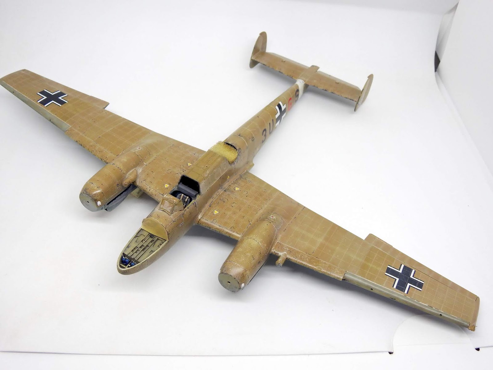 Je vous l'avais promis la semaine passée, j'ai pas réussi à la finir à temps, c'est donc pour aujourd'hui. Voici la maquette du Bf-110 E MTO (Mediterranean Theater Operation) d'Eduard au 1/48ème. La maquette n'est pas extraordinaire, il y a beaucoup de points d'assemblage délicats, pour ne pas dire compliqués. Je citerais par exemple, le montage des nacelles moteur ou du nez. Pour cette maquette, commencée il y a presque 5 ans, j'ai entrepris de faire le rivetage et de sortir becs et volets. J'ai en plus rajouté la planche Eduard destine au Bf 110 E. A part ça la maquette est d'origine (mais c'est déjà beaucoup de travail en plus...). la suite en photos: